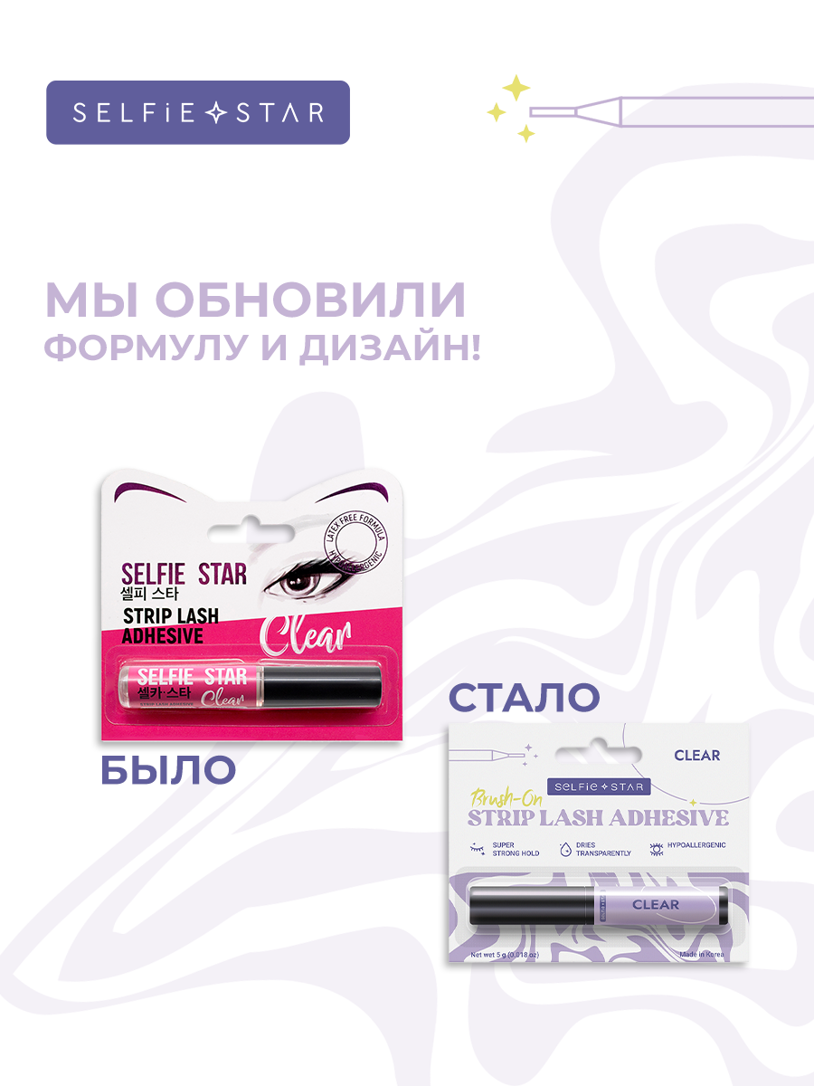 Selfie Star Клей для накладных ресниц с кисточкой, Прозрачный, 5g. Strip Lash Adhesive Clear