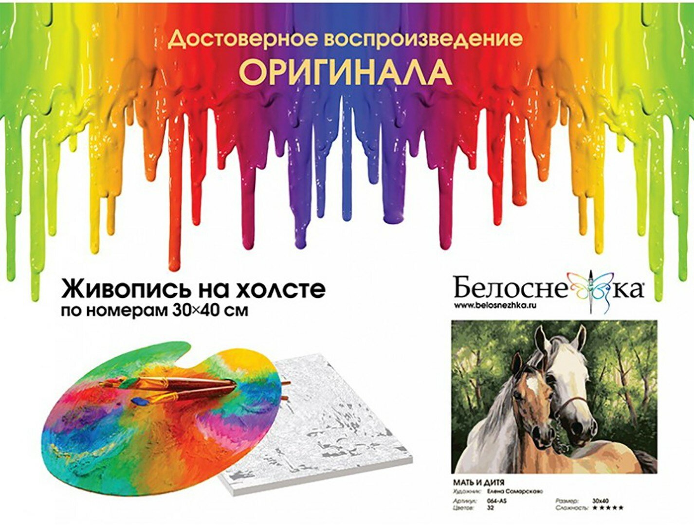 Картина по номерам Белоснежка "Мать и дитя" / Раскраска / Холст на подрамнике 30х40 см. / Лошади