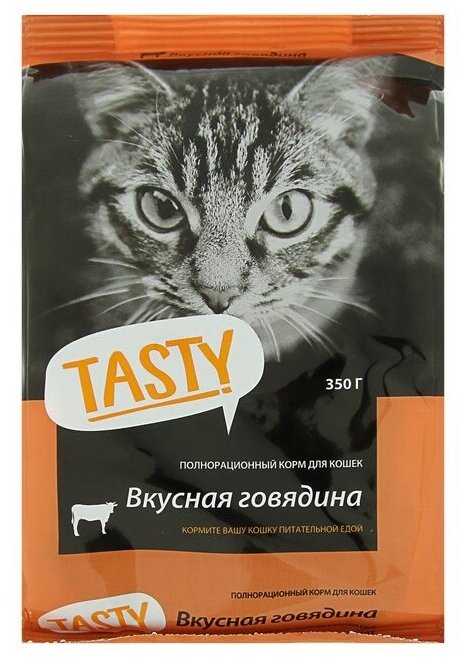 Купить Tasty Сухой корм Tasty для взрослых кошек, говядина, 350 г