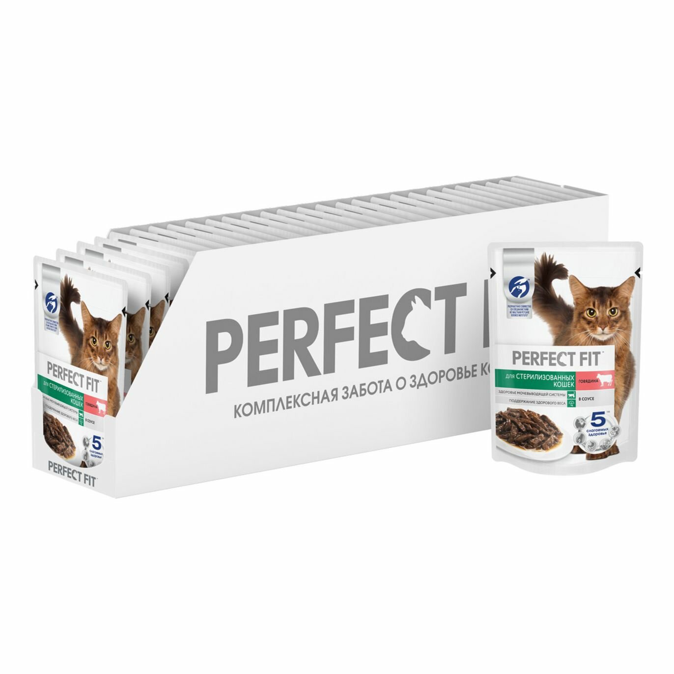 Купить Влажный корм Perfect Fit для стерилизованных кошек, с говядиной в соусе, 75г x 28 шт