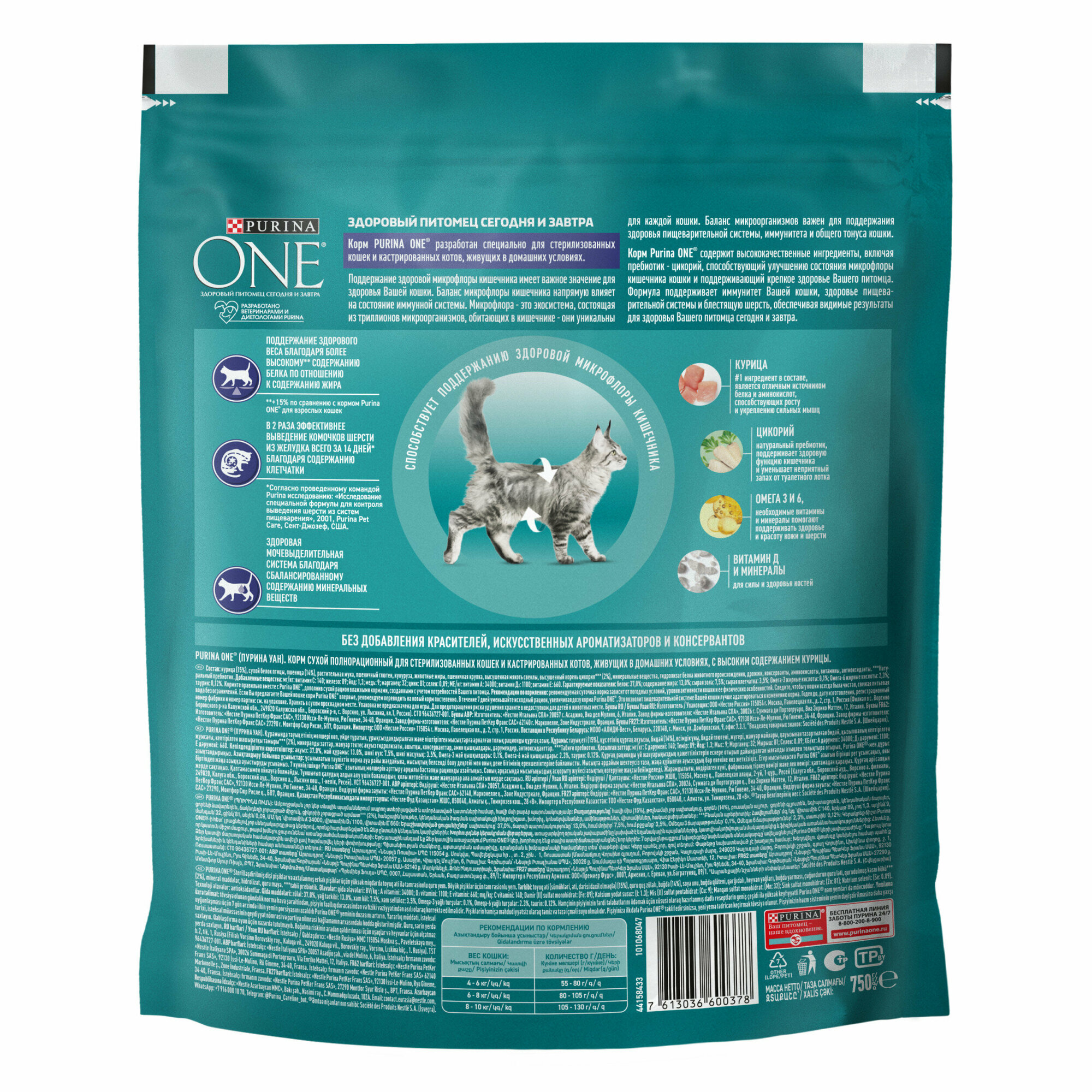 Сухой корм Purina ONE для стерилизованных кошек и кастрированных котов, живущих в домашних условиях, с высоким содержанием курицы и цельными злаками, Пакет, 750 г х 2 шт