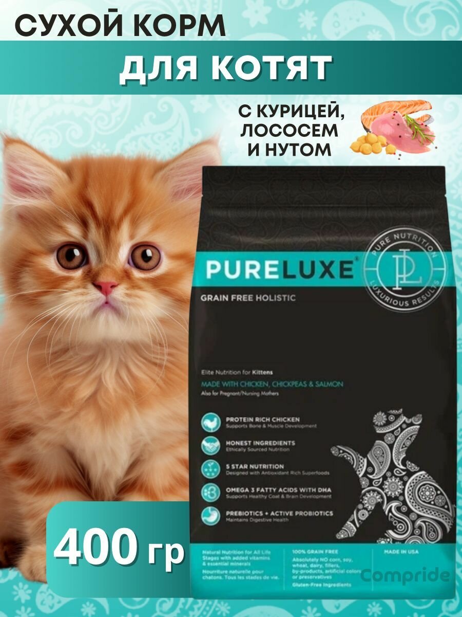 PureLuxe корм для котят с курицей, нутом и лососем 400 гр