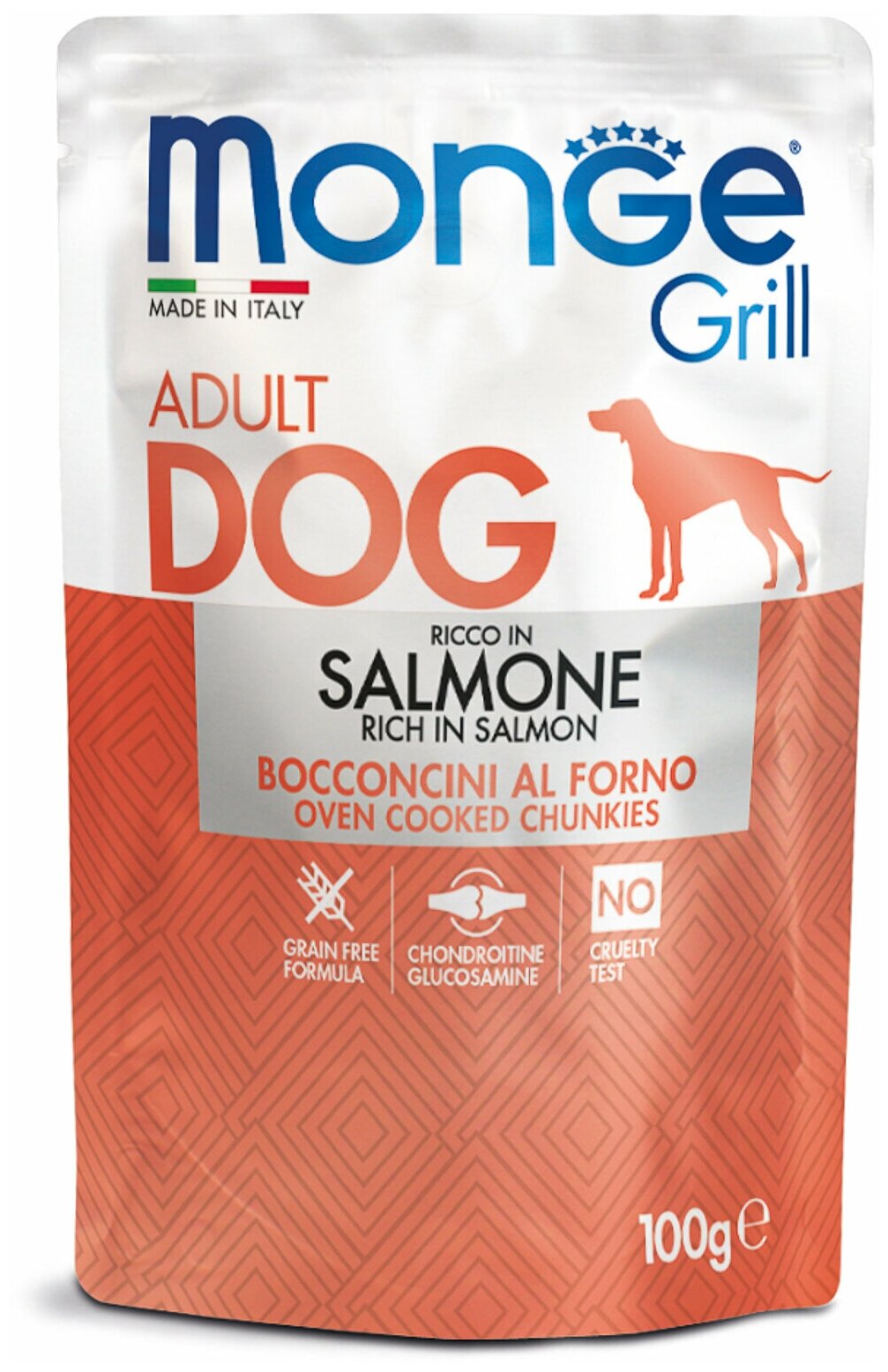 Влажный корм для взрослых собак Monge GRILL POUCH SALMONE, с лососем, 100 г, 1 шт.