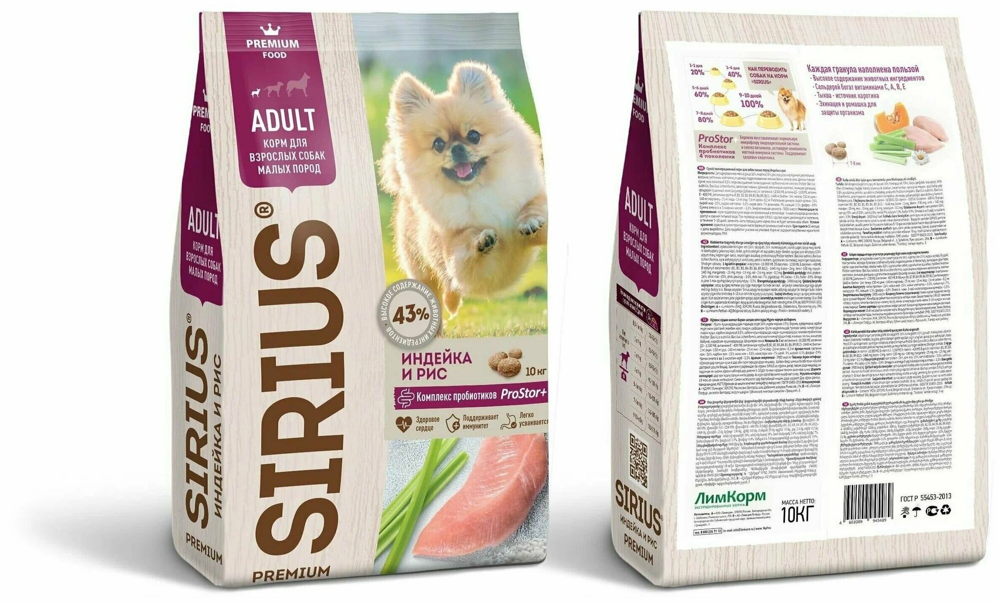 SIRIUS для взрослых собак маленьких пород с индейкой (2 + 2 кг)