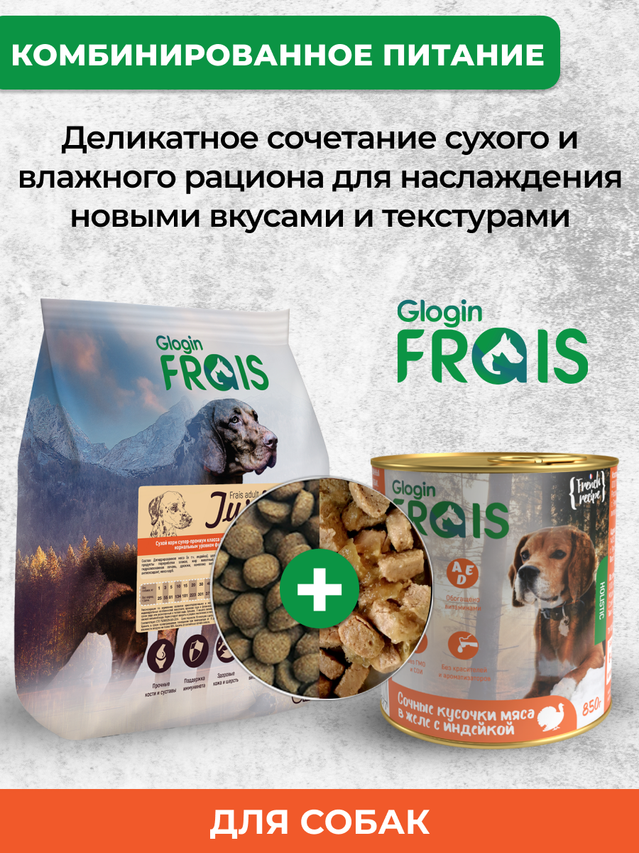 Сухой корм Frais, для взрослых собак, с индейкой, супер-премиум, гипоаллергенный