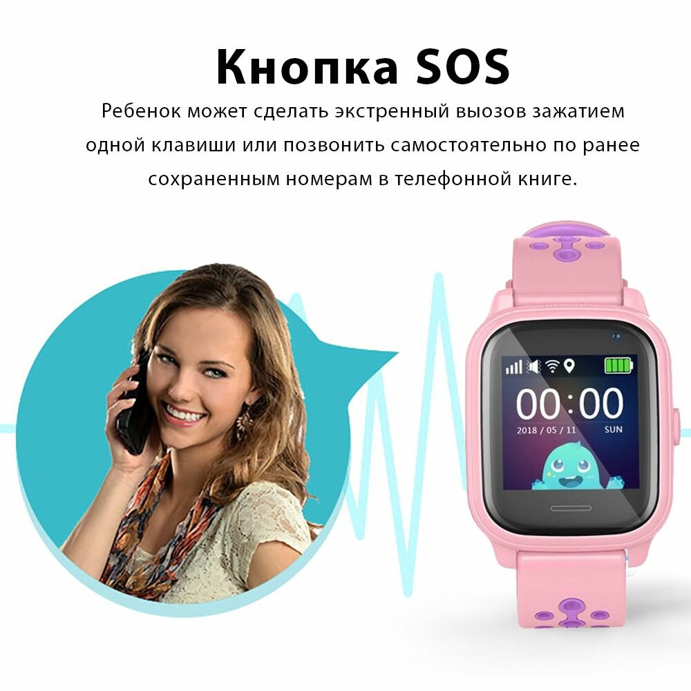 Купить Смарт часы детские KT04 школьнику, умные часы с GPS и сим картой, смарт-часы телефон для девочки в школу, розовый