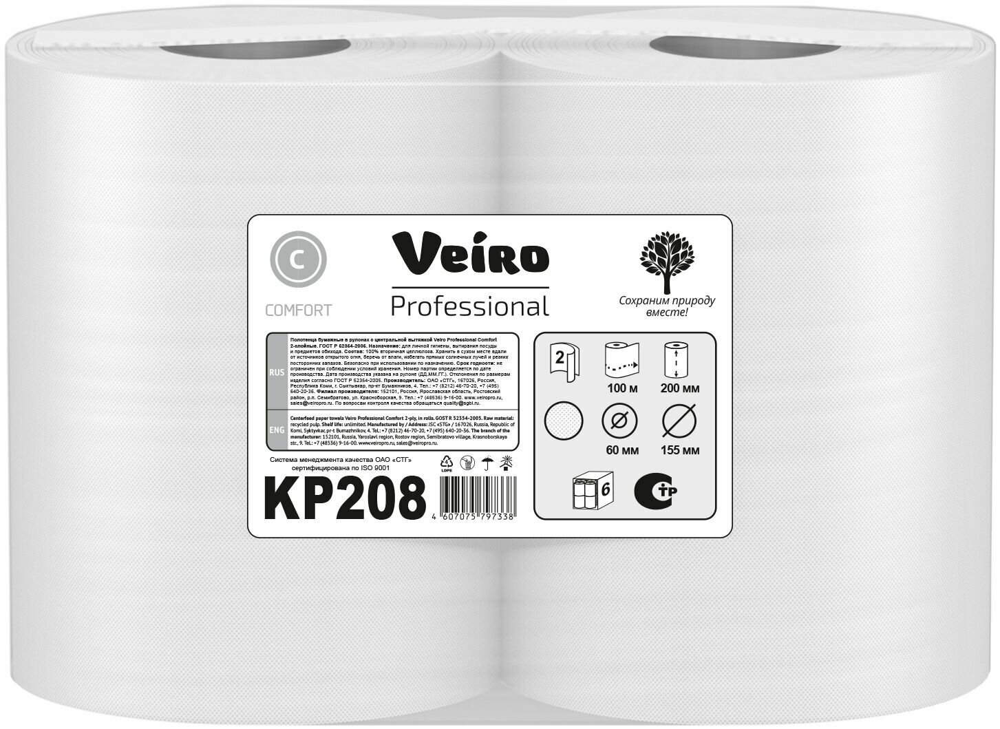 Купить Бумажные полотенца в рулоне с центральной вытяжкой Veiro Professional Comfort KP208 100 м (Система M2, С1, С2), белые, 2 слойные, 6 рулонов