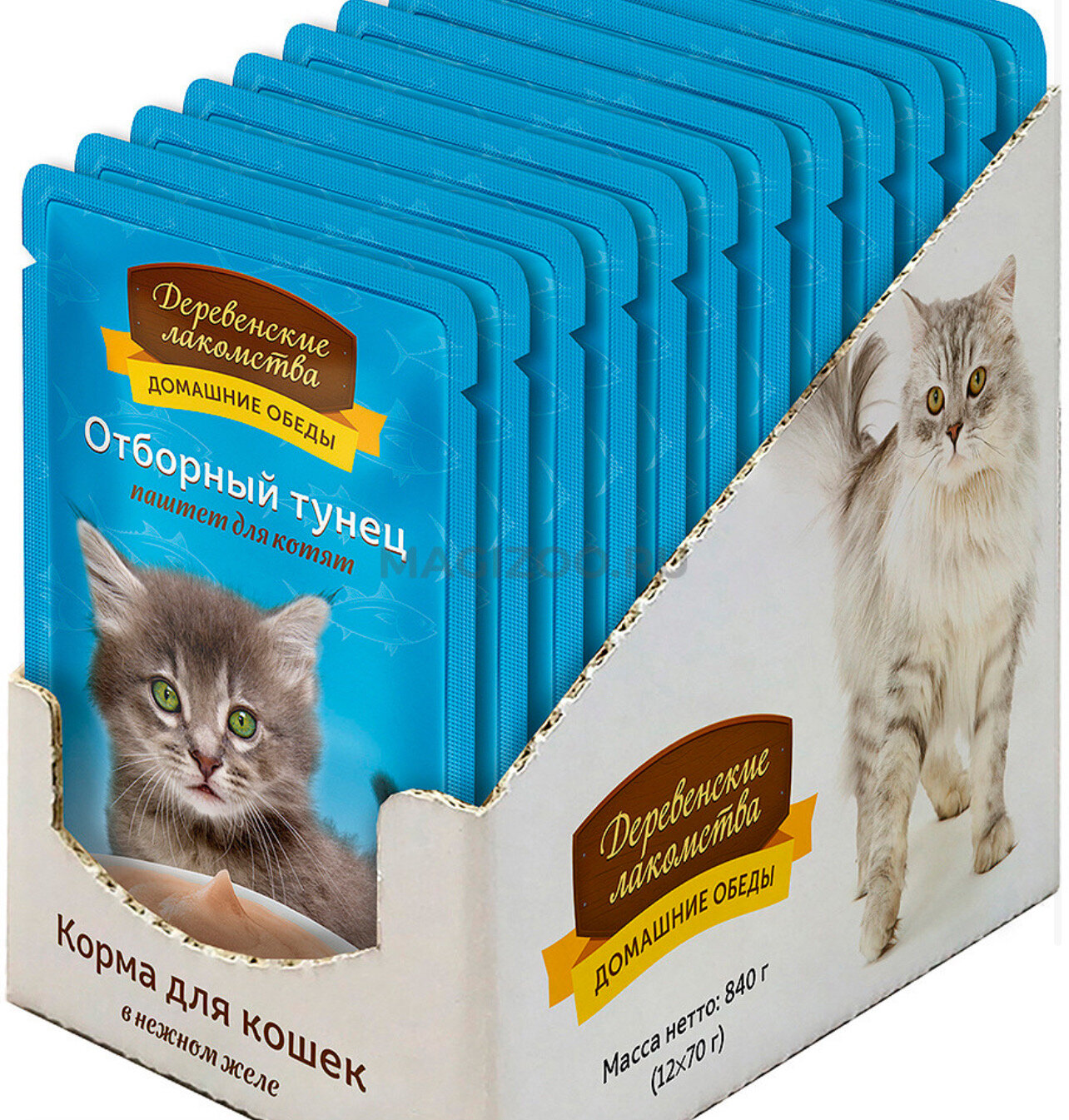 Влажный корм для котят Деревенские лакомства Домашние обеды, беззерновой, с тунцом 70гр×12шт.×1уп. (кусочки в желе) интересное: