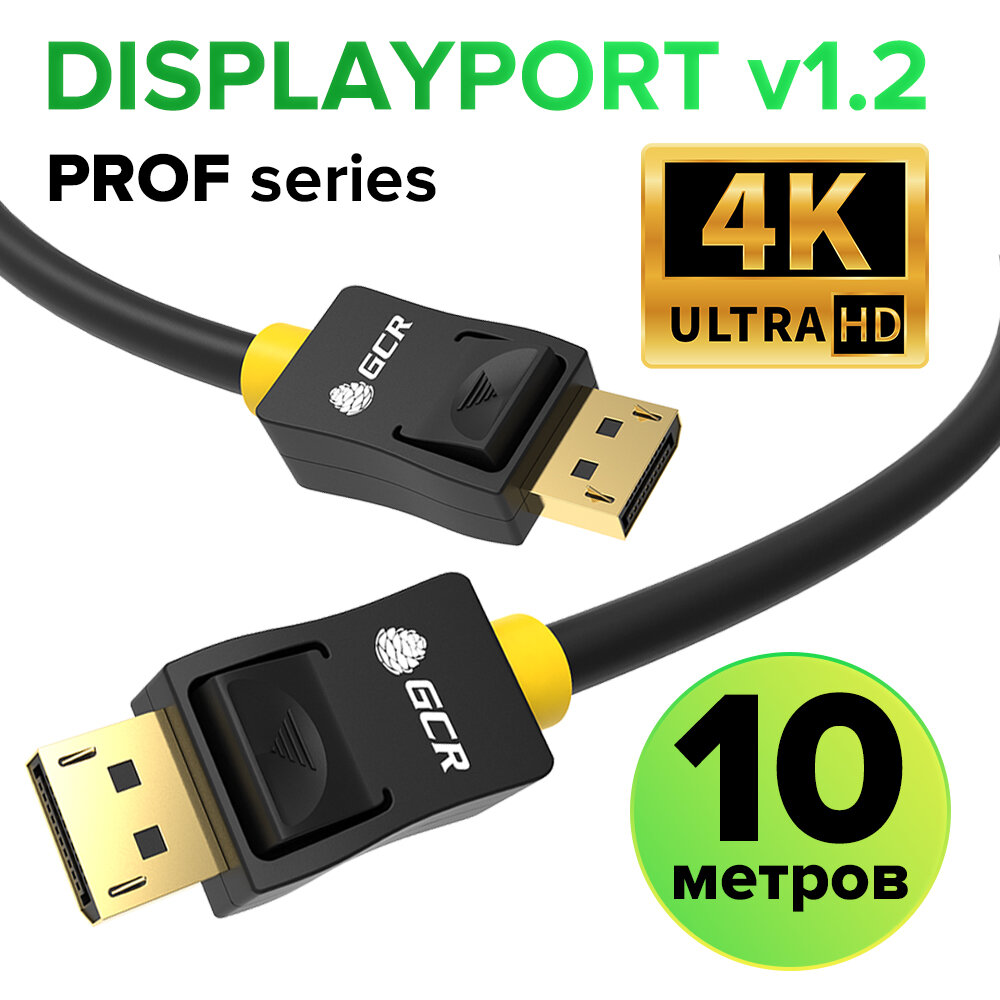 Кабель DisplayPort v1.2 GCR для монитора телевизора ПК 10 метров displayport кабель папа папа 10 м 10.8 Гбит/с, 4K@60Hz, Full HD черный провод
