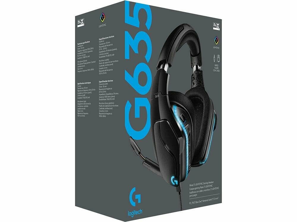 Купить Гарнитура Logitech G635 Lightsync, для компьютера и игровых консолей, накладные, проводные, черный [981-000750]
