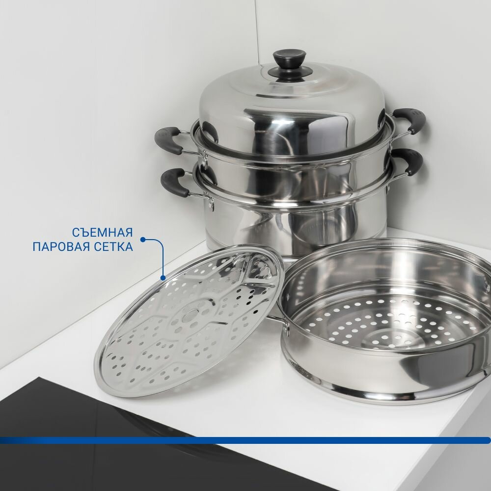 Купить Мантоварка, 28см, нержавеющая сталь, 3 яруса