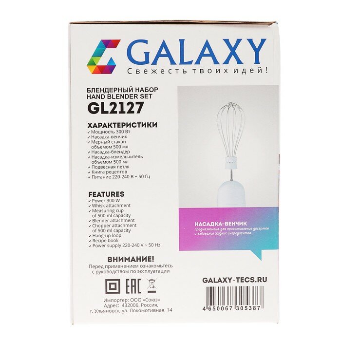 Блендерный набор Galaxy GL 2127, 300 Вт, 0.5 л, 1 скорость, белый