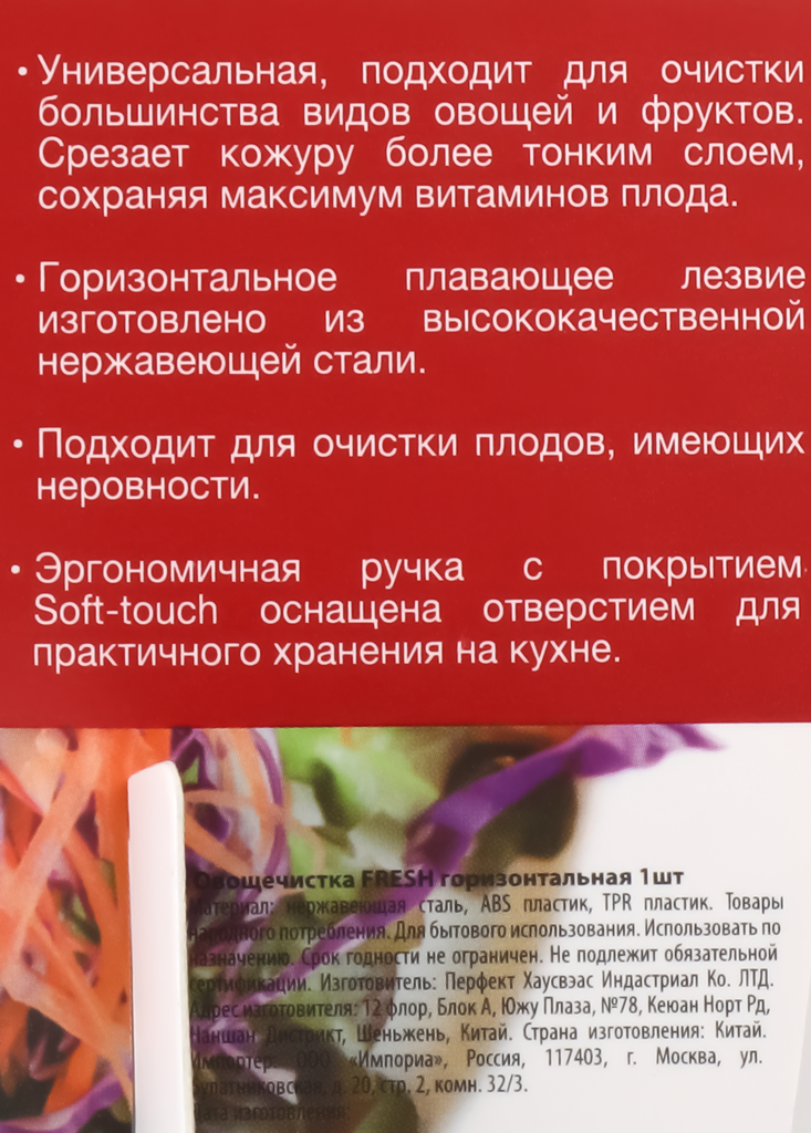 Острота - это плюс, минус нет защиты лезвия, поэтому нужно быть осторожным при использовании. Овощечистка тонко срезает кожуру. При неосторожном использовании она может порезать пальцы. Я использую её только для овощей и фруктов. Мелкие овощи трудно очистить от кожуры. Однако при правильной технике и должном умении их можно легко очистить от кожуры. |