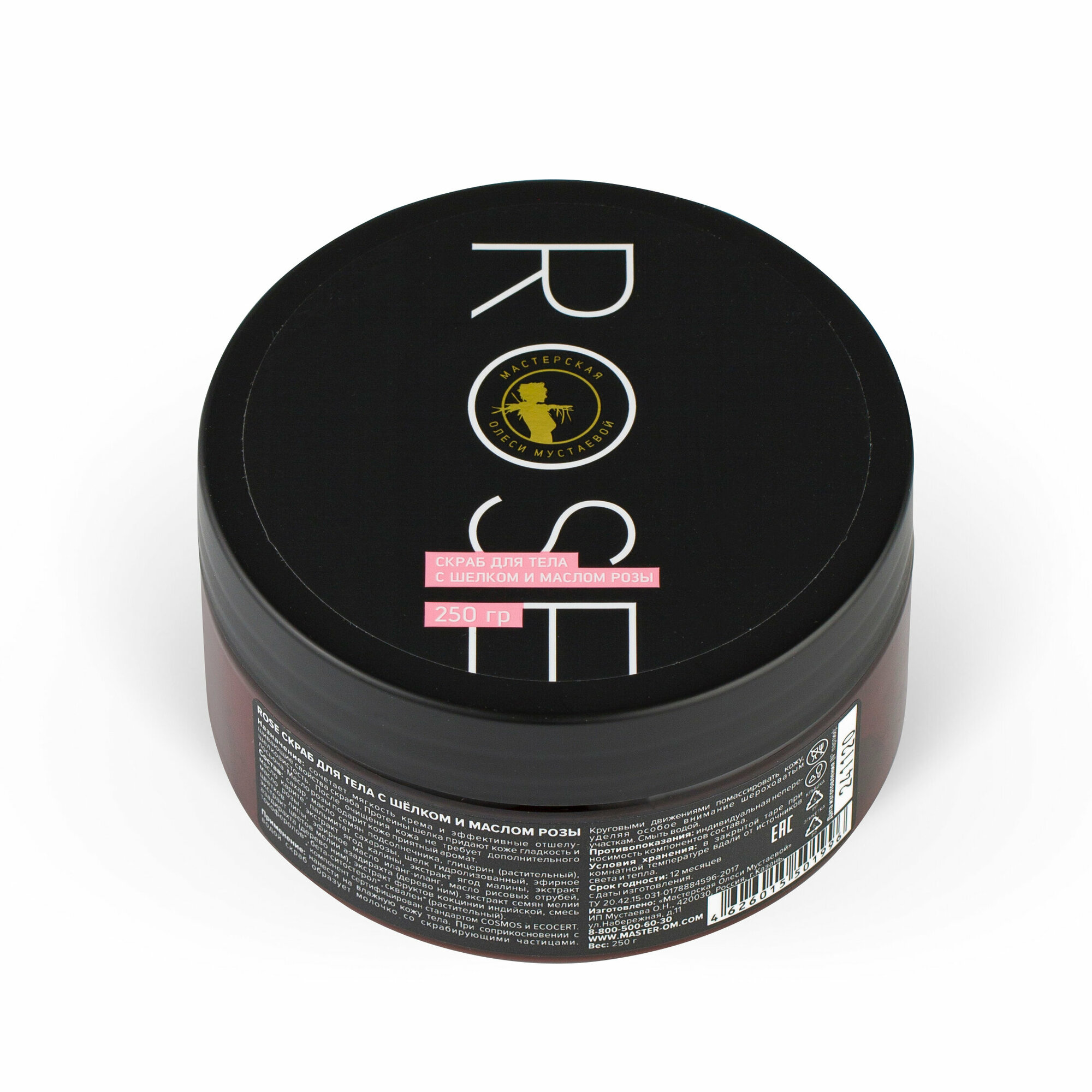 Rose скраб для тела с шёлком и маслом розы Мастерская Олеси Мустаевой антицеллюлитный , 250 г