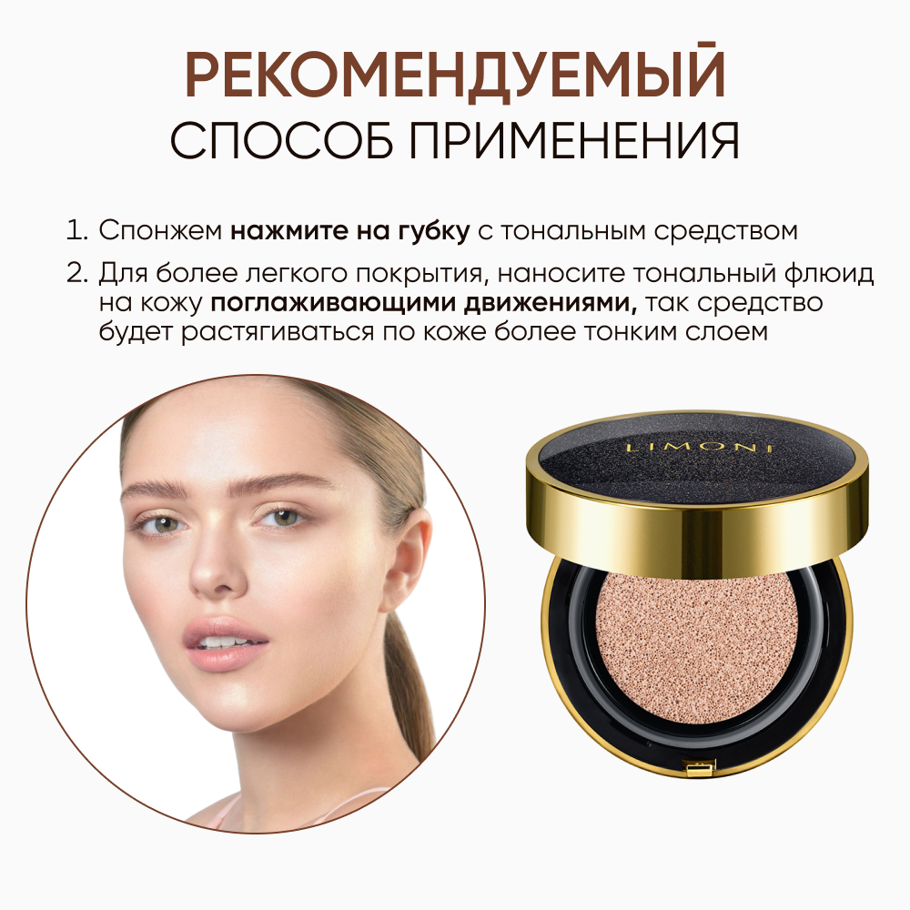Тональный флюид кушон LIMONI All Stay Cover Cushion SPF 35 / PA++ Galaxy т.02 Medium 1 шт