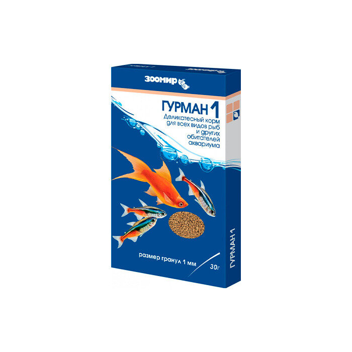 Корм для рыб Гурман-1 30г р-р 1мм, коробка 2/200/Зоомир