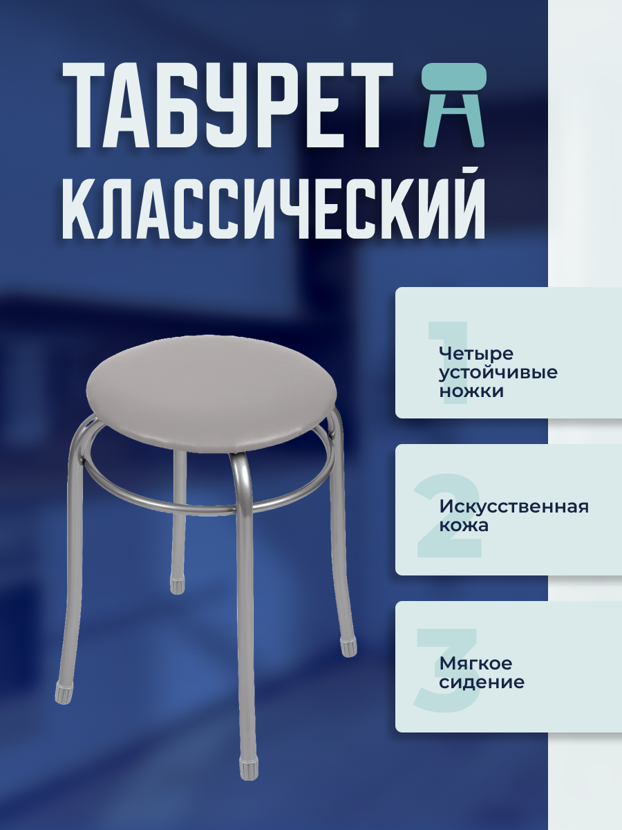 Табурет Nika Стайл 2 ТБС2, металл/искусственная кожа, цвет: серый
