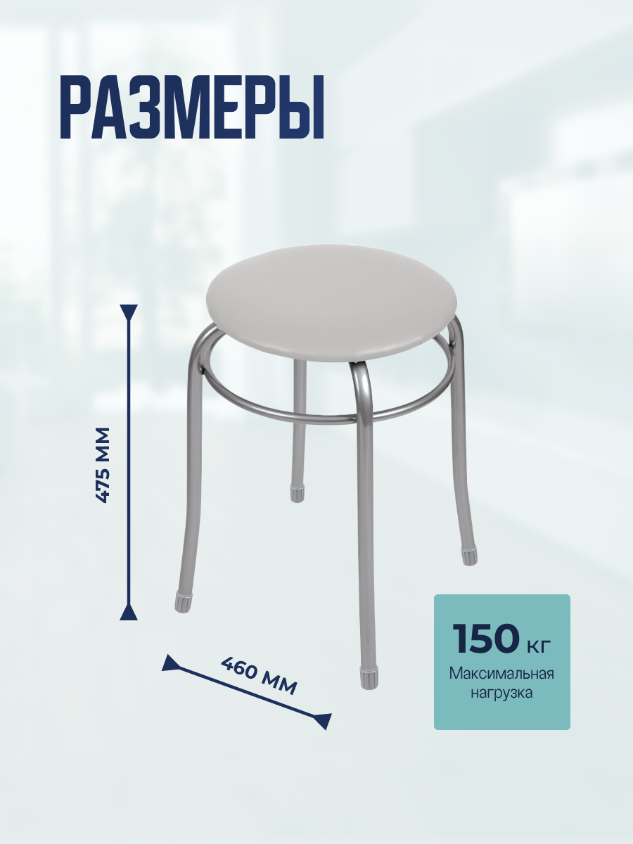 Табурет Кругл.Стайл2 До 120 Кг, Серый, D Сид.=30См, Дсп/Винилискожа, H=46,5См/D=18Мм,Тбс2/С Nika (арт. 660721)