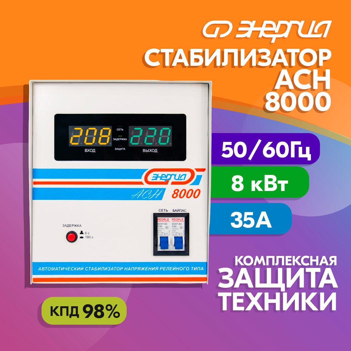 Стабилизатор напряжения Энергия АСН-8000, 8000 ВА, однофазный, для дома