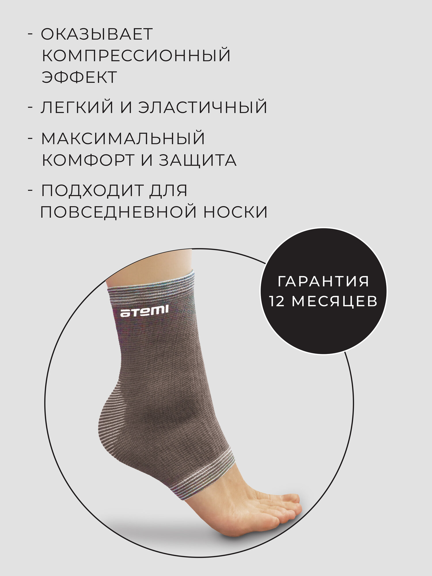 Суппорт голеностопа Atemi, эластичный, полиэстер размер S