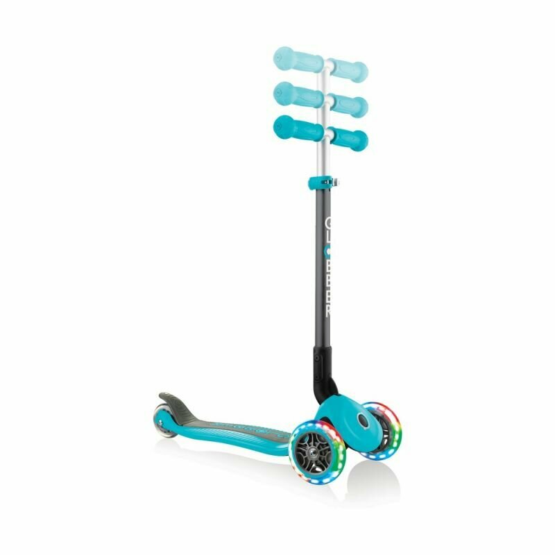 Детский 3-колесный самокат GLOBBER Primo Foldable Lights, бирюзовый
