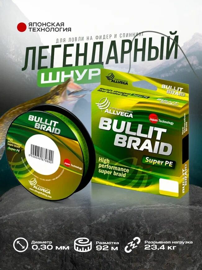 Плетеный шнур Allvega Bullit Braid 92м 0,26мм 18,6кг, темно-зеленая