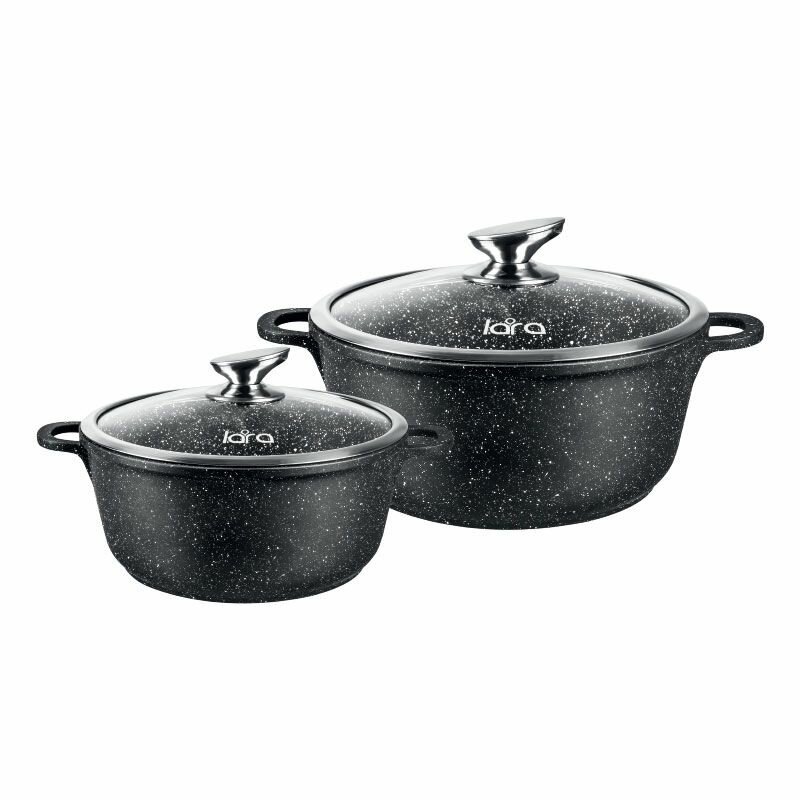 Набор кастрюль LARA LR02-111 2 штуки, 3,1л + 5,0л, черный