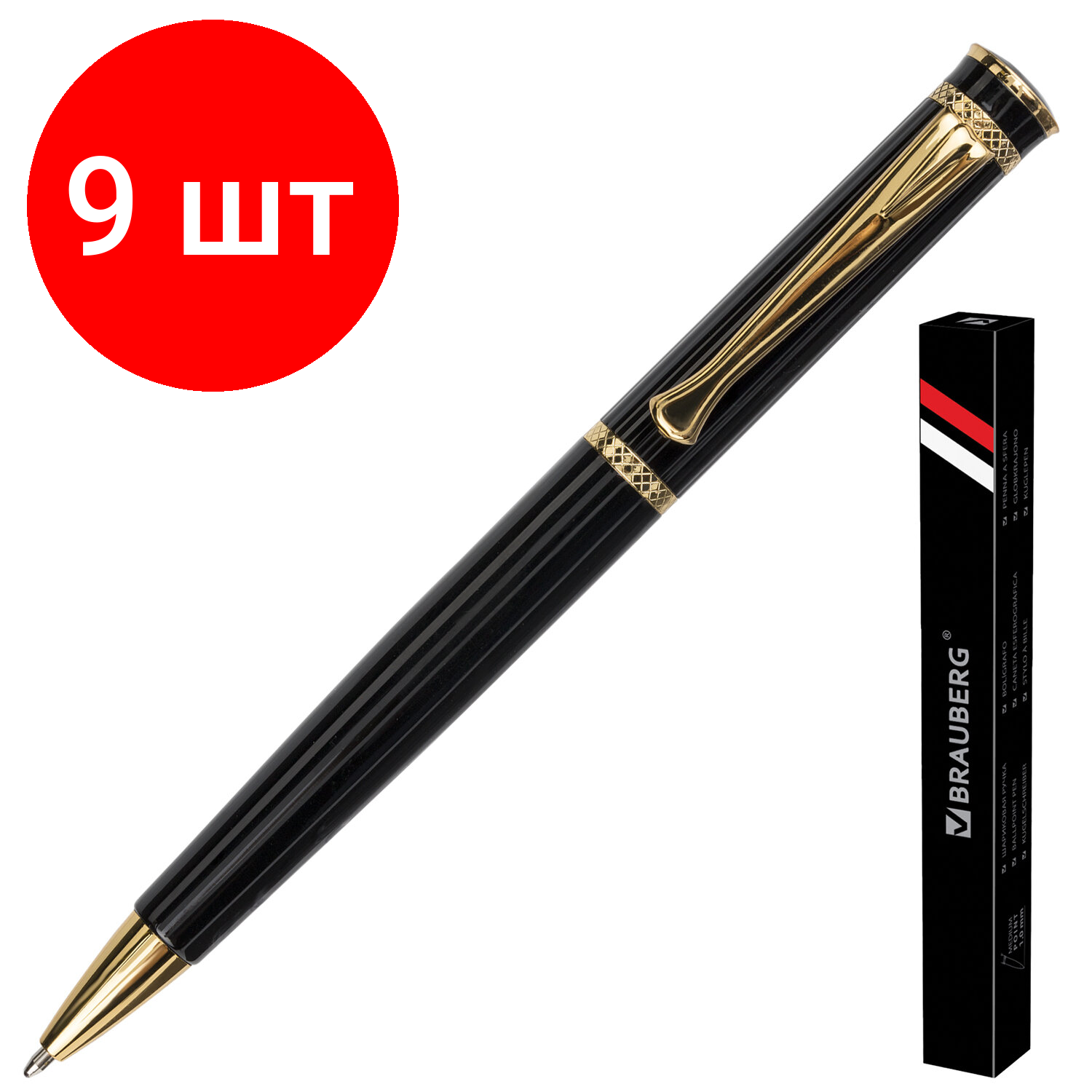 Купить Комплект 9 шт, Ручка подарочная шариковая BRAUBERG "Perfect Black", корпус черный, узел 1 мм, линия письма 0.7 мм, синяя, 141416
