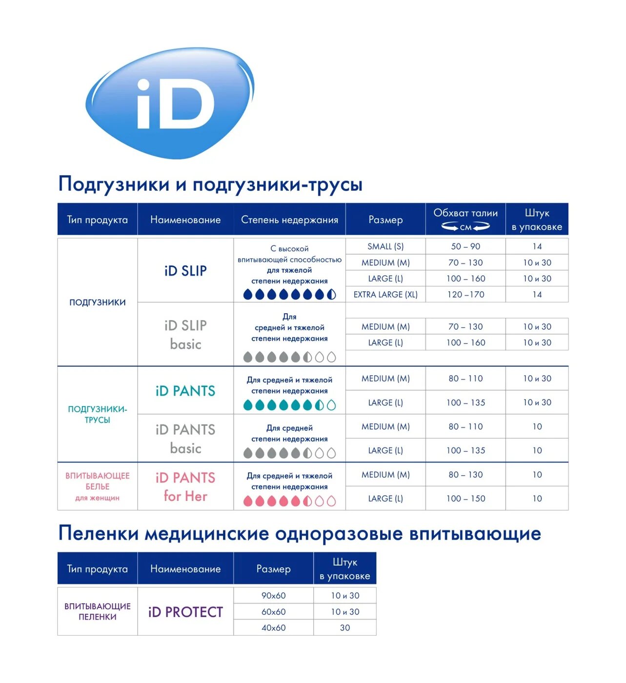 Подгузники-трусики для взрослых iD Pants размер M, 10 шт .