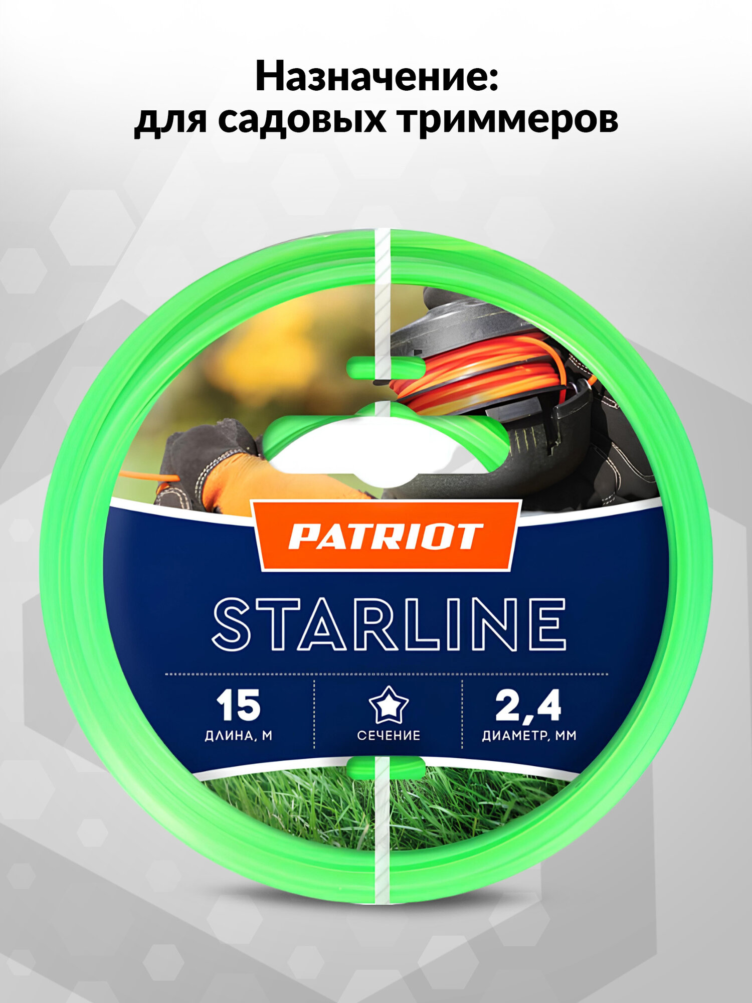 PATRIOT Леска Starline D 2,4 мм L 15 м звезда, зеленая 240-15-3 на пластиковой обойме, блистерн.тип 805201061