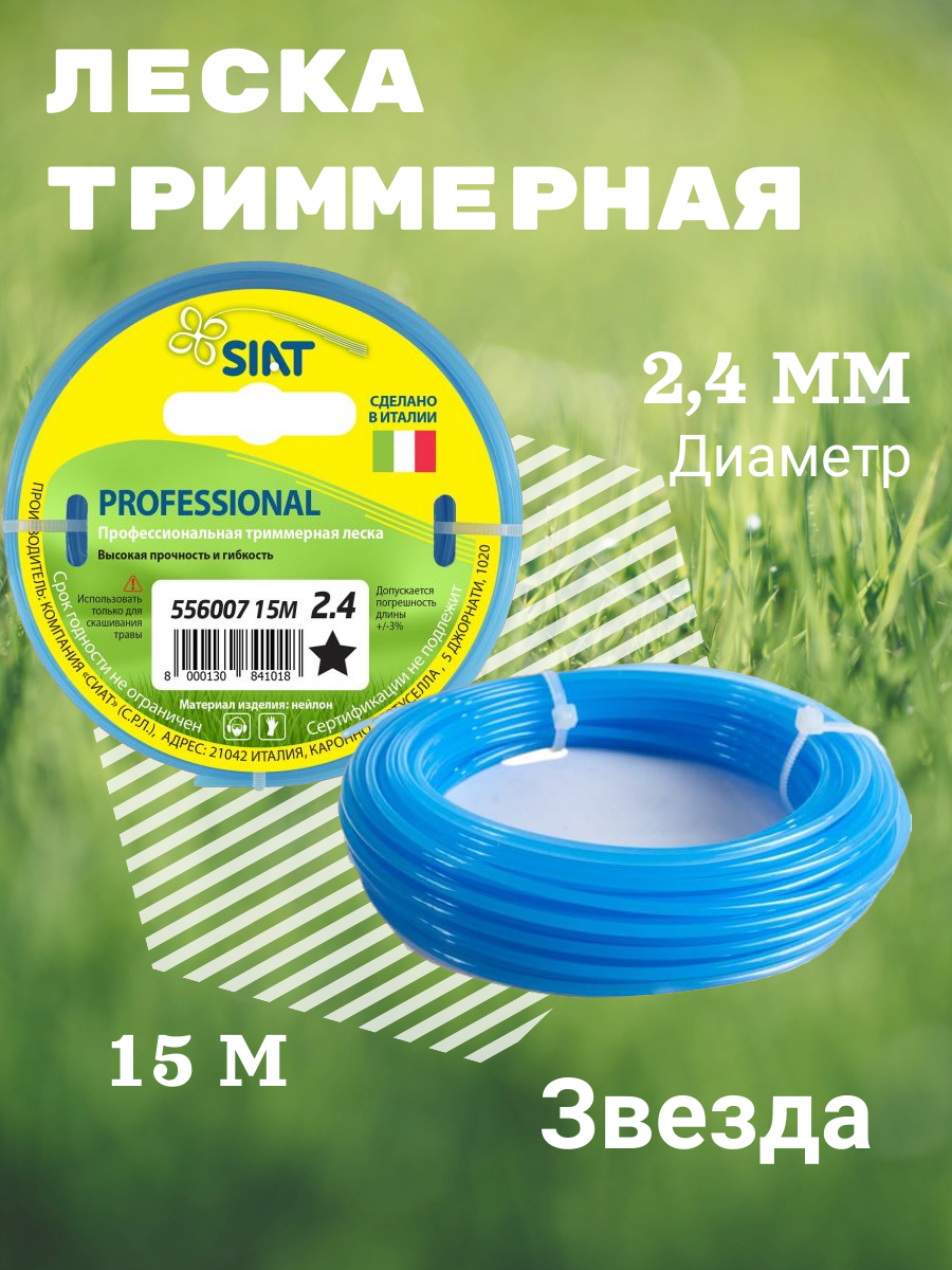Леска для триммера Siat Professional 556007, сечение звезда, 2,4 мм х 15 м