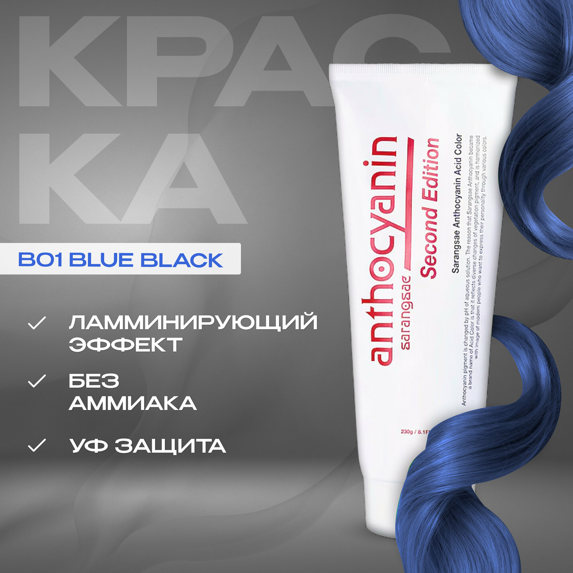 Купить Anthocyanin черно-синяя краска для волос B01 Blue black 230 мл без аммиака профессиональная ламинирующая