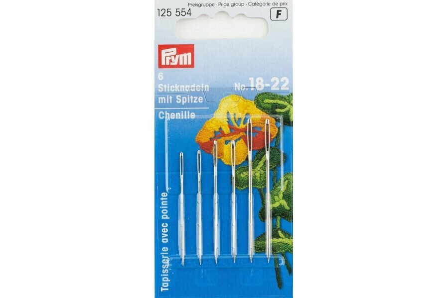Иглы ручные для вышивания и шитья синель № 18-22, 6шт, Prym, 125554