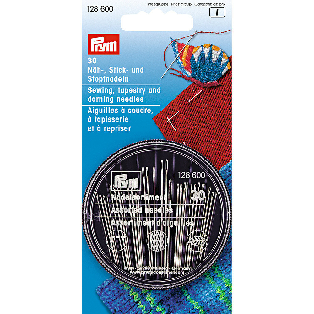 Набор ручных игл для шитья, вышивки и штопки в распределительном пенале, 30 шт, Prym