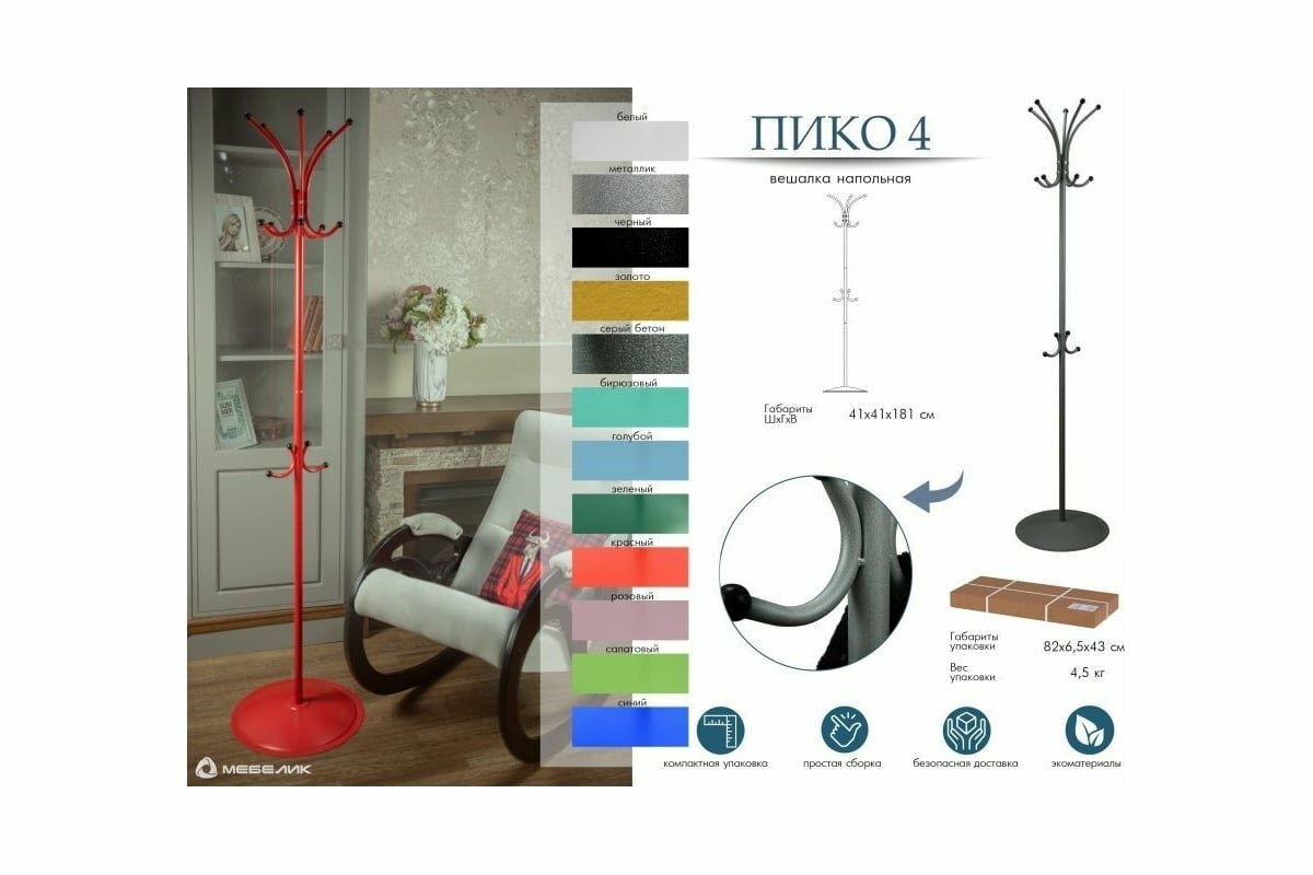 Ниже Вы можете прочитать отзывы на Напольная вешалка Мебелик Пико 4, ознакомится с подробными характеристиками, посмотреть интересные обзоры и фотографии на Напольная вешалка Мебелик Пико 4.