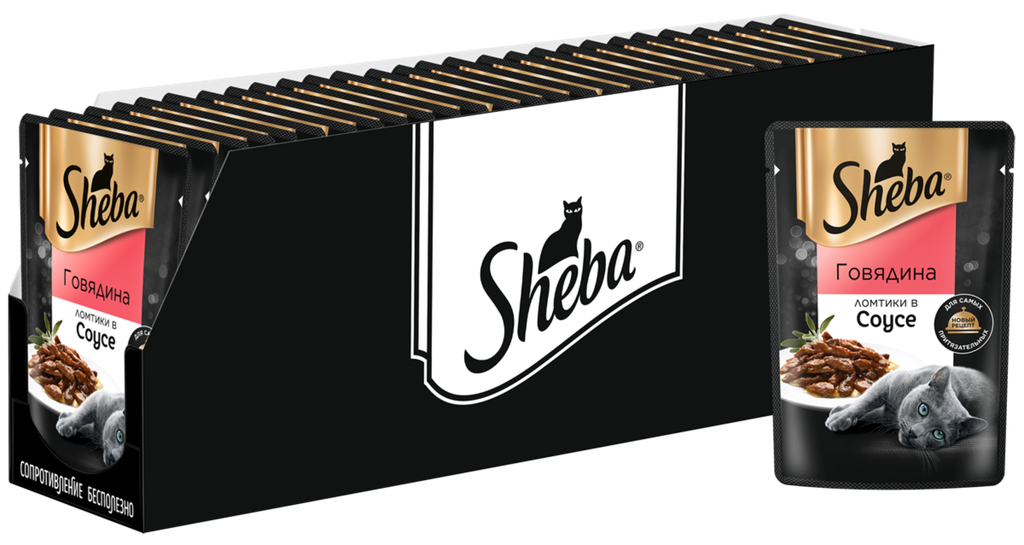Sheba влажный корм для взрослых кошек всех пород, ломтики в соусе, говядина (24шт в уп) 85 гр