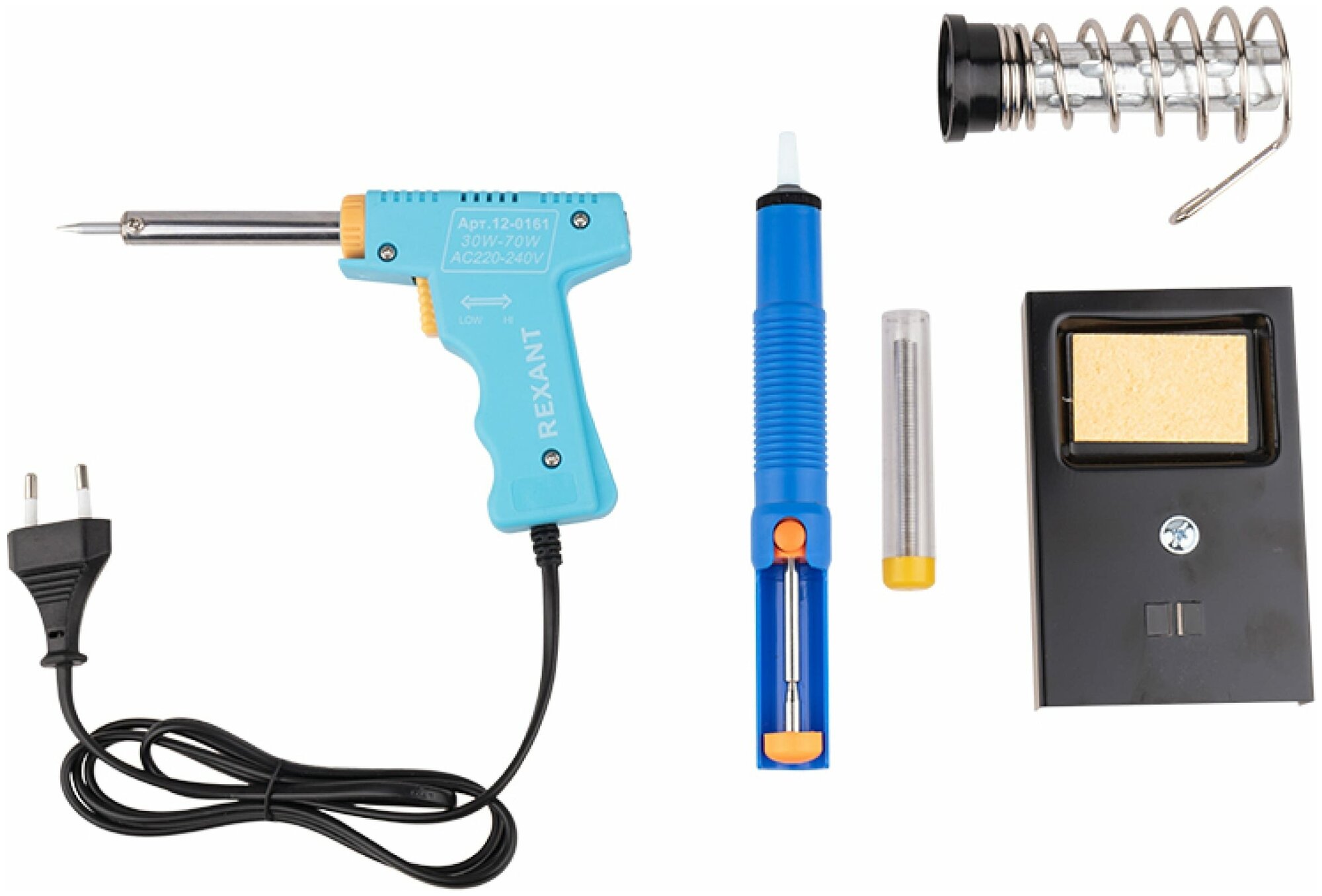Набор для пайки REXANT (паяльник импульсный 30/70 Вт, оловоотсос, подставка, припой)