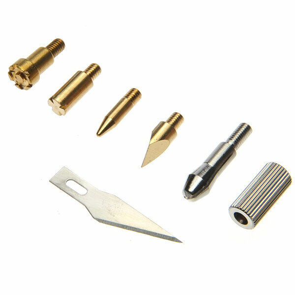 дешевый китайский паяльник с насадками для выжигания Недостатки: неудобный. толком не жгет по дереву или очень долго. честно говоря ерунда полнейшая если сравнивать с выжигателем советского образца. или маленькая ручка с дугой работающей от трансформатора. а так это больше паяльник. |