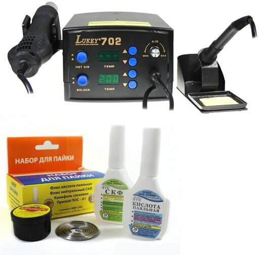 | Минусы: | Хочется побогаче комплект конечно - в части сопел для фена и жал для паяльника, но это желание больше чем недостаток |