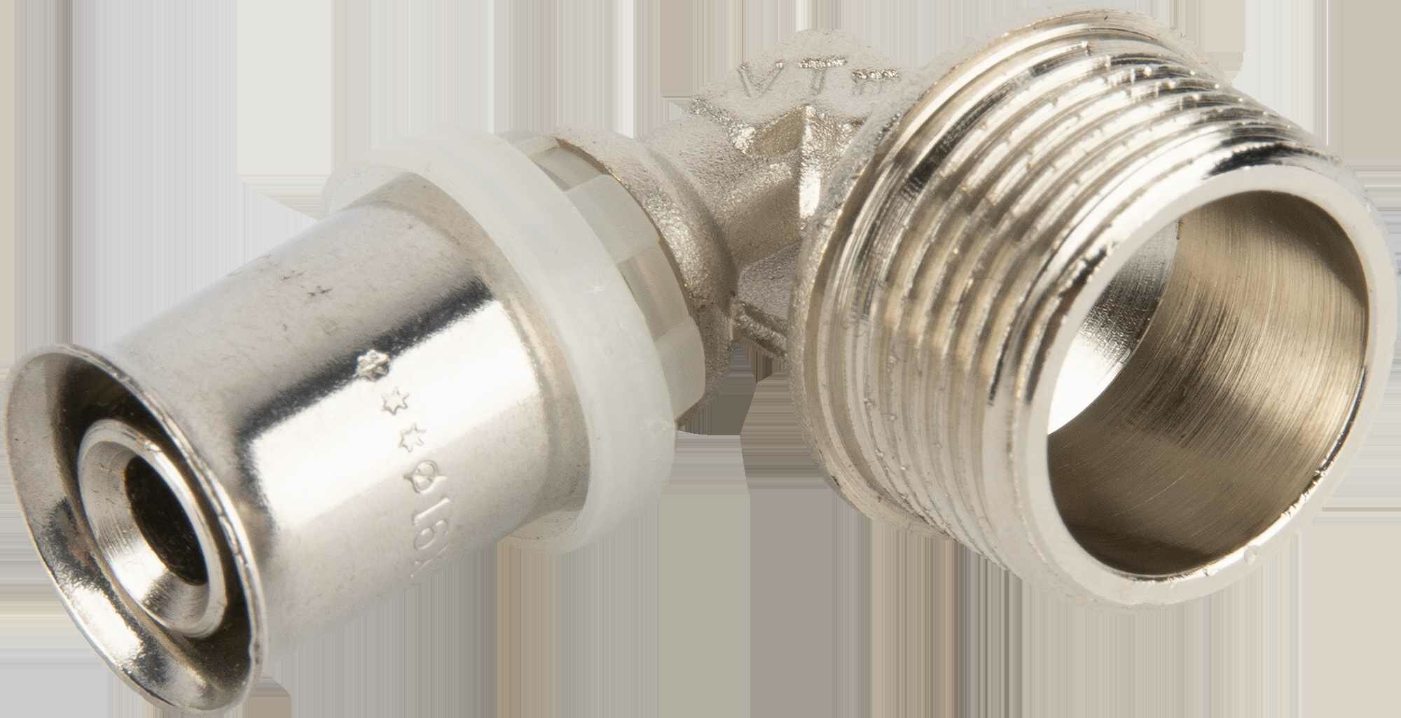 Пресс-фитинг угольник с переходом на наружную резьбу 16х3/4 VTm.253.N