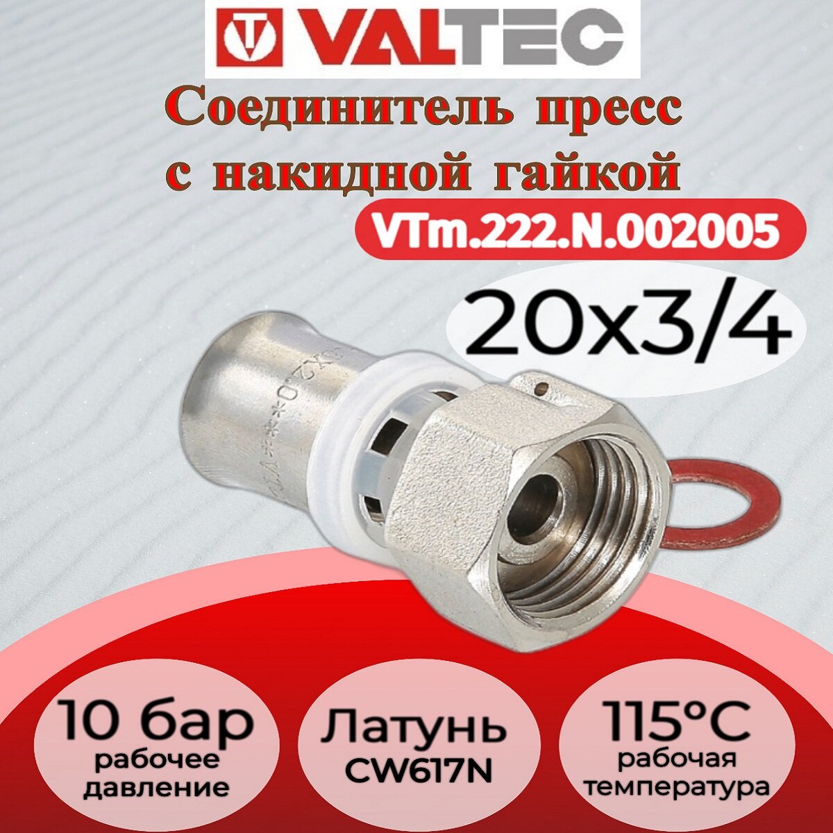 Соединитель пресс с накидной гайкой 20х3/4" | код. VTm.222.N.002005 | VALTEC ( 1шт. )