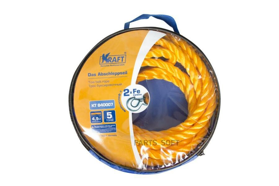 KRAFT AUTOMOTIVE KT840007 Трос буксировочный канатный 5 тонн в сумке 4,5 м (2 мет.кр.,полипропилен) KRAFT KT840007