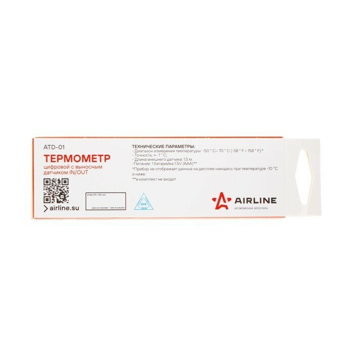 Термометр Airline Цифровой С Выносным Датчиком In/Out(Atd-01) AIRLINE арт. ATD01