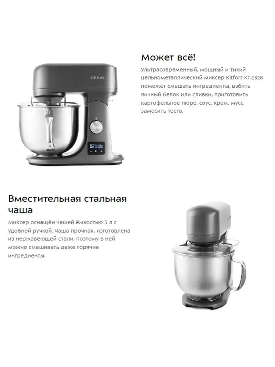 Цельнометаллический планетарный миксер Kitfort КТ-1328