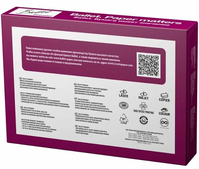 Бумага для принтера Бумага Ballet Premier А4, марка А, 80 г/кв.м, (500 листов)