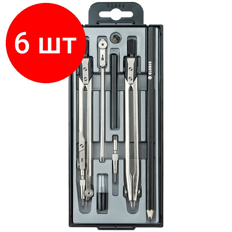 Купить Комплект 6 шт, Готовальня Globus "Technica", 8 предметов, циркуль 125мм, пластиковый футляр