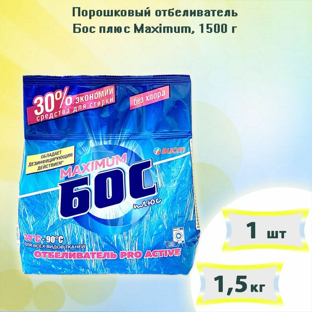 Средство для отбеливания и чистки всех типов тканей 1,5 кг БОС плюс Maximum, порошок В комплекте: 1шт.