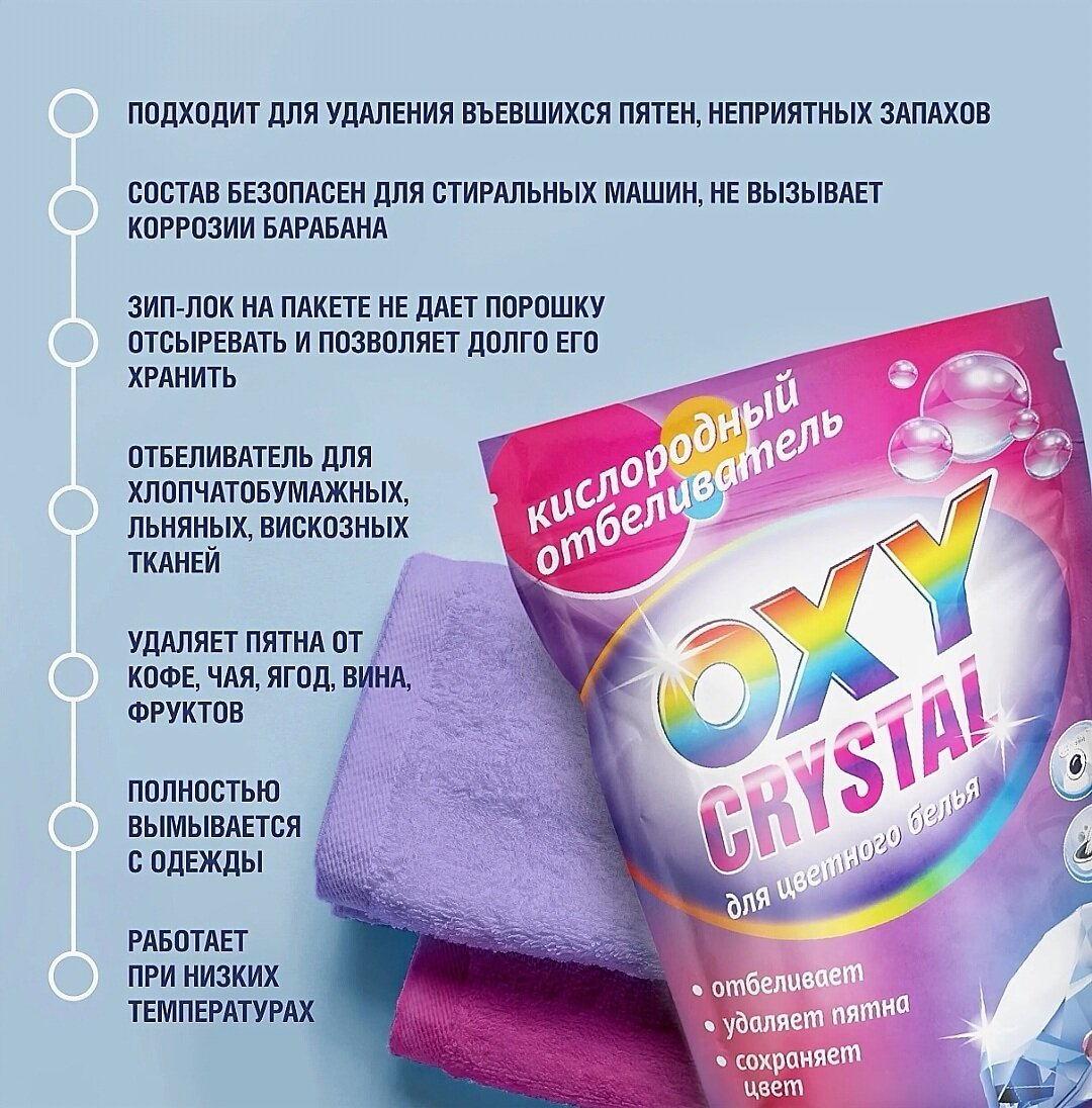 Кислородный отбеливатель, пятновыводитель OXY CRISTAL для цветного белья, 600 г