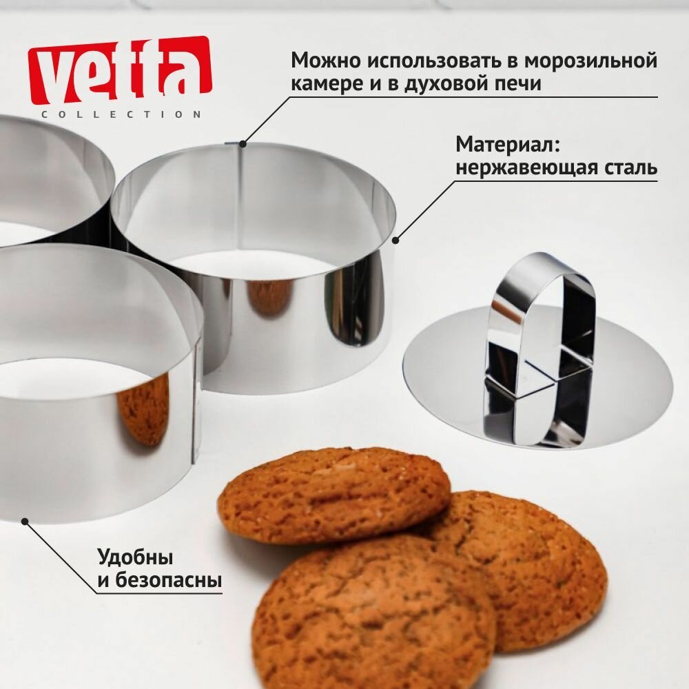 Набор форм Vetta для приготовления салатов / десертов / Кулинарные кольца 4 предмета, 9х4см