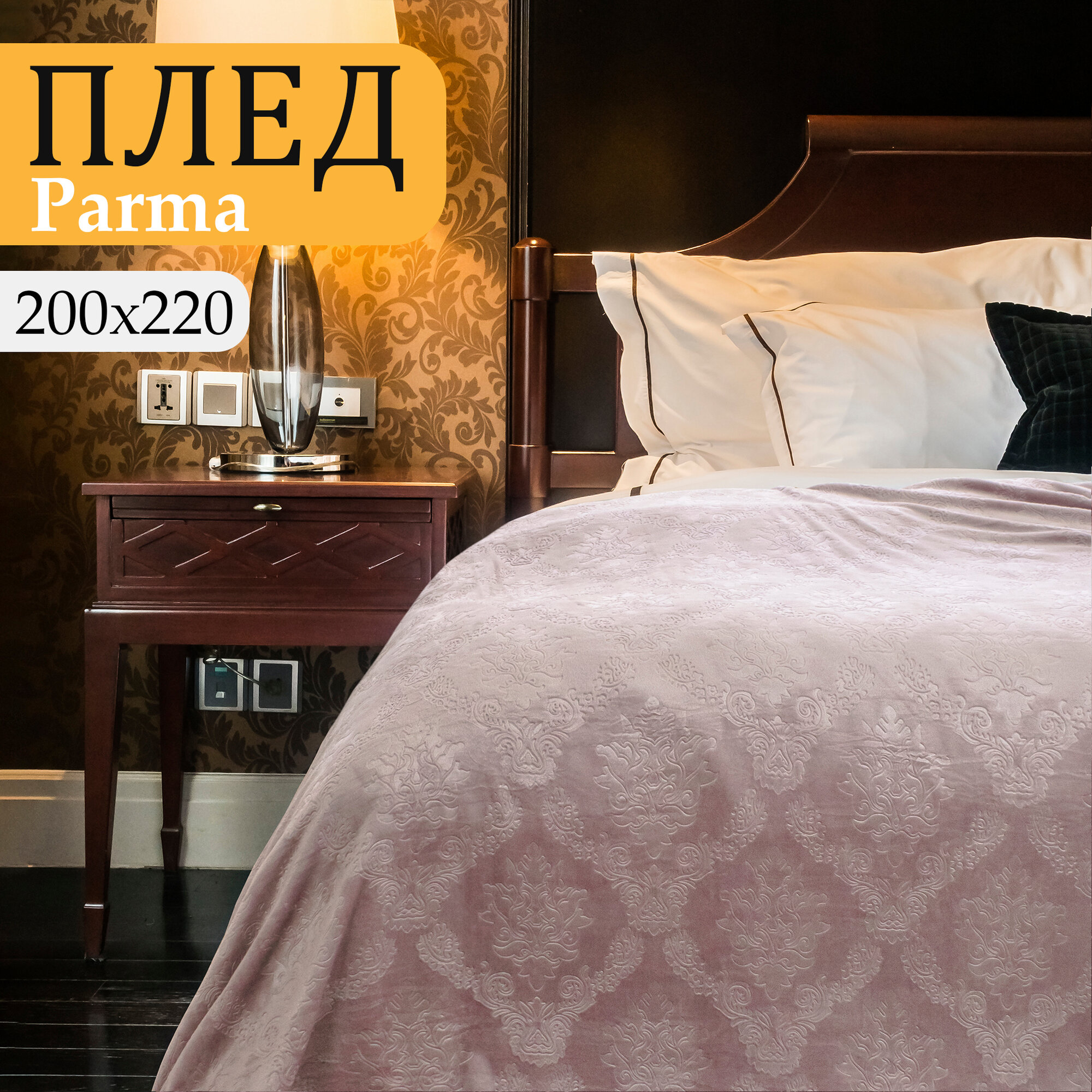 Плед 180х200 2-спальный Cleo Parma розовый шампань, покрывало на кровать и диван пушистое с рисунком, велсофт